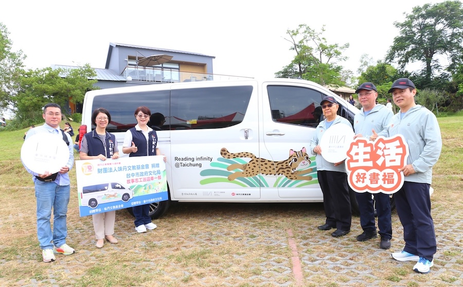 【記者吳靜/台中報導】台中市立圖書館全新故事志工巡迴車登場囉!今(26)日在味丹70週年企業家庭日活動上,財團法人味丹文教基金會捐贈一輛全新故事志工巡迴車,車身繪有充滿活力的石虎,超萌圖案吸引大小朋友的目光,這部巡迴車將隨志工們走遍大台中,將閱讀的快樂帶到每個角落,讓書香幸福無所不在。文化局長陳佳君出席捐贈儀式,感謝基金會多年來支持台中閱讀文化,透過公私協力,推動城市閱讀。