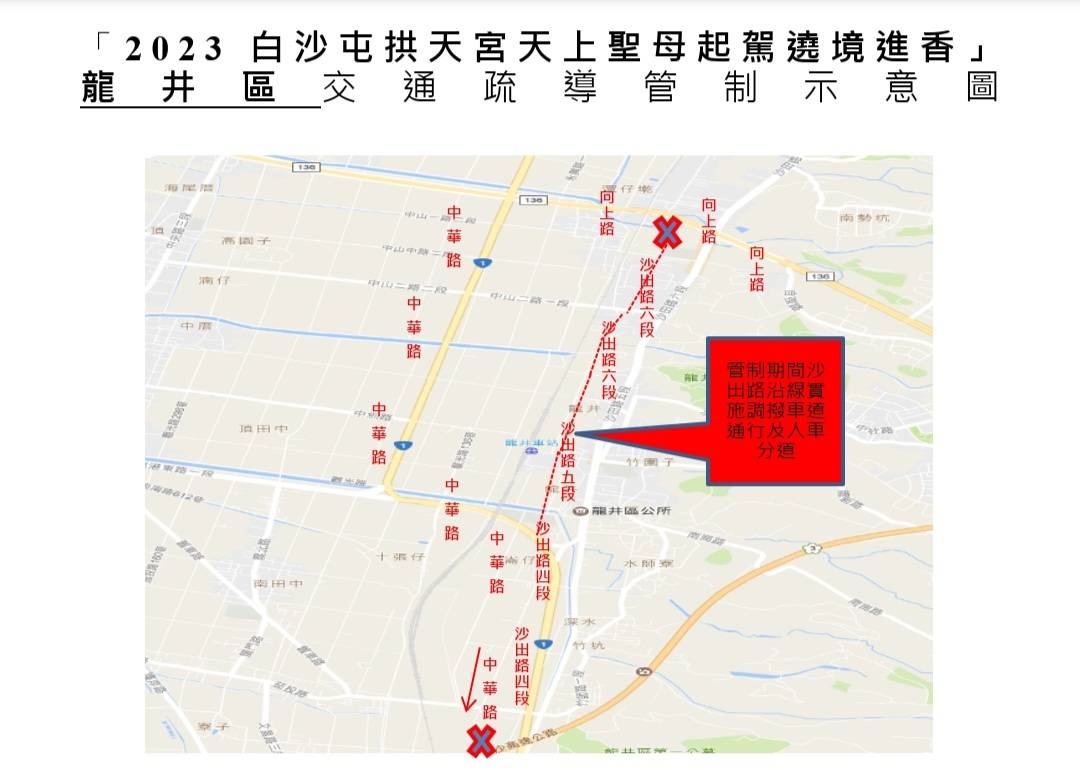 (1)大肚區路口管制部分(禁止小客車以上車輛進入大肚市區沙田路二、三段白沙屯媽祖遶境沿線):