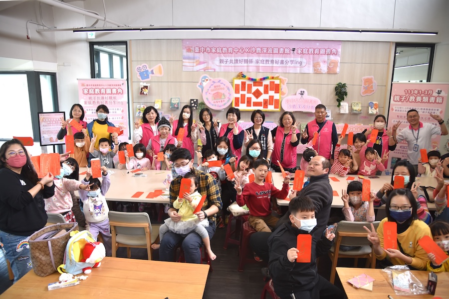 今日活動,包括台中市議會副議長顏莉敏、沙鹿區長張世祺、台中市立圖書館長曾惠君及味丹文教基金會董事長楊辰文等皆到場共襄盛舉,現場還安排親子手作-愛的紅包袋活動,場面熱鬧溫馨。