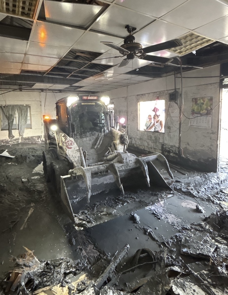 【記者吳靜/台中報導】花蓮馬太鞍溪堰塞湖溢堤,導致道路中斷、住家與農地嚴重淤積。台中市政府建設局救災團隊持續支援,其中更有隊員家屬也參加「鏟子超人」志工行列,共同為花蓮災區努力。昨(30)日除道路復原外,更深入民宅勘查,了解居民受災情況,並立即調度人力與機具展開清理。厚重泥沙逐步被清除,受災鄉親激動表示「看見台中隊到來,心裡終於踏實」,更感謝重機具的加入大幅加快復原進度。