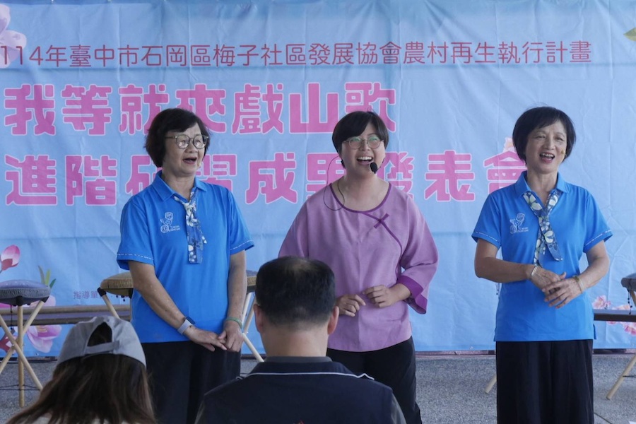 【記者李瑞華/台中報導】台中市政府農業局輔導台中市石岡區梅子社區發展協會,於(5)日在梅子社區承福祠百年芒果樹下廣場舉辦「我等就來戲山歌-進階客家歌謠與戲劇研習計畫成果發表會活動」。此次活動展現出社區居民歷時多月的學習成果,藉由歌謠、戲劇與在地文化的結合,讓參與者感受石岡社區濃厚的人情味與文化底蘊。