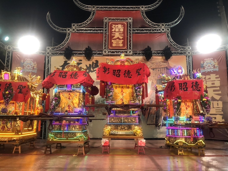 民政局說明,浩天宮昨晚在梧棲文昌路浩天宮牌樓前舉行盛大接駕儀式,中堡五十三庄各宮廟神轎、各式陣頭及上萬民眾前往接駕,媽祖鑾轎抵達,眾人齊喊「進哦,發哦」,恭迎媽祖鑾轎上紅壇安座,眾人團拜祈福,隨後舉行回鑾重頭戲梧棲當地民俗活動「跑大轎比賽」,各宮廟轎班人員向媽祖神轎行禮後,接著抬著神轎來回衝刺,展現活力與耐力,最後恭迎媽祖入廟安座,媽祖神像迎回,代表今年遶境結束,祈盼藉由媽祖繞境出巡,驅除邪煞、保佑台灣、台中平安,為今年的進香活動畫下圓滿句點。