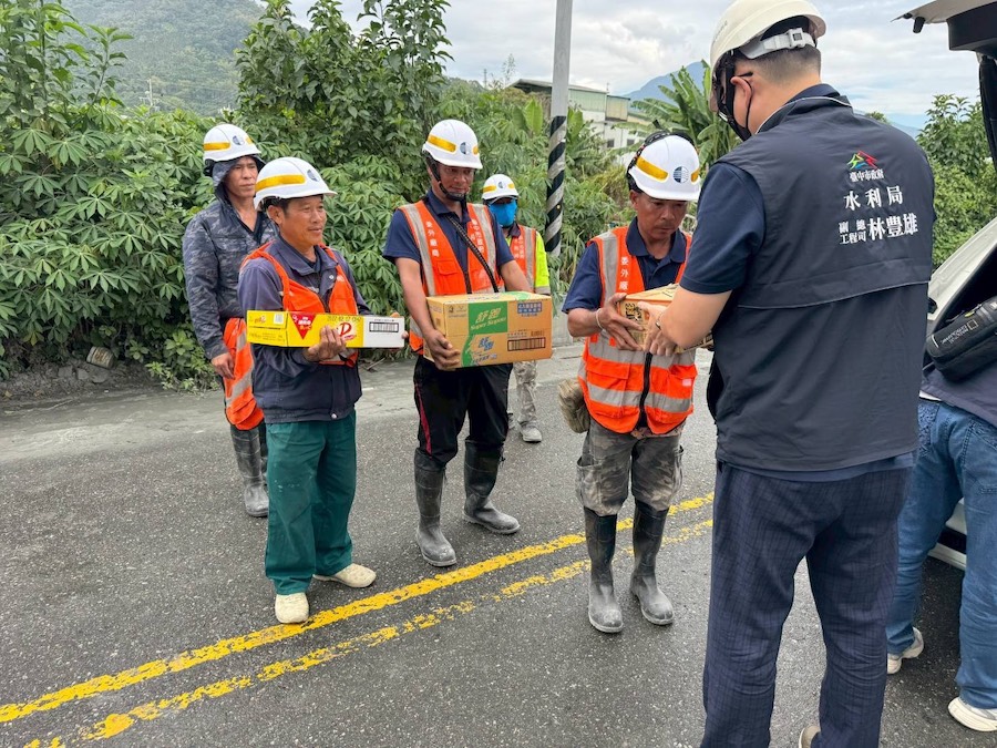 水利局長范世億表示,市府特別重視前線同仁的安全與身心狀況,感謝所有日以繼夜、不畏辛勞付出的超人夥伴,今(17)日上午特別請水利局副總工程司林豊雄代表前往災區送上點心、餅乾與瓶裝水等補給品,慰勞第一線救災人員,為奮戰中的隊員們補充體力、提振士氣,讓大家在艱困環境中感受到滿滿的支持與溫暖。