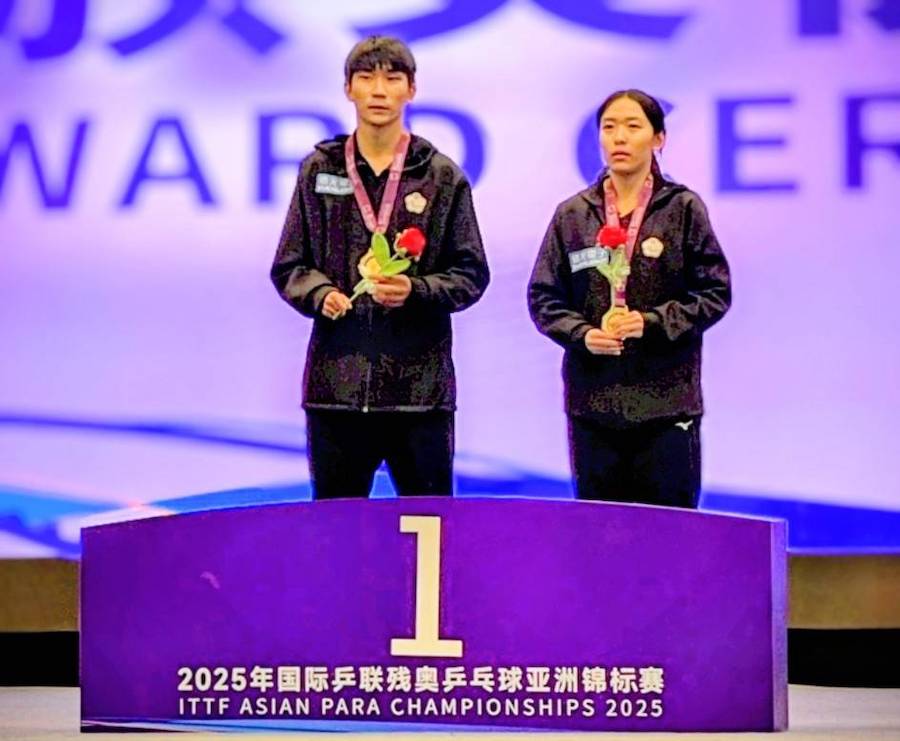 【記者詹姆士熊/台中報導】「2025北京帕拉桌球亞洲錦標賽」於昨(19)日圓滿落幕,台中市身心障礙桌球好手林姿妤、蘇晉賢在教練王明月帶領下代表我國出賽,表現亮眼,總計奪下3金1銅的佳績。其中林姿妤更勇奪女子單打、女雙及混雙三面金牌,達成「三金大滿貫」壯舉,不僅再度揚名國際,也為台灣與台中爭光,更順利取得2026世界盃桌球錦標賽參賽資格。
