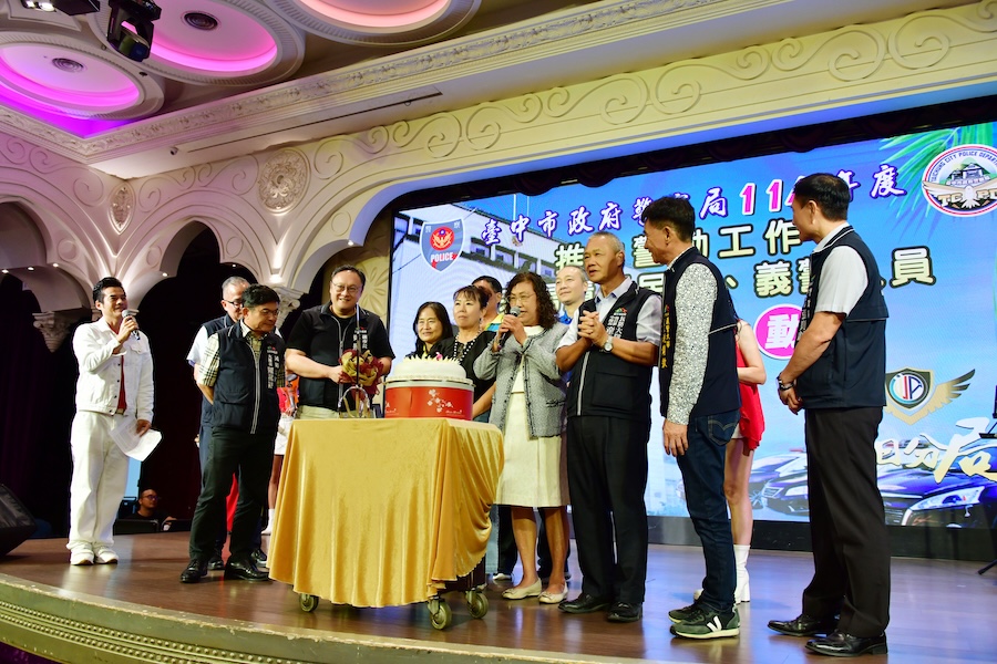 【記者吳靜/台中報導】台中市政府警察局烏日分局昨(21)日晚間在潮港城國際美食館隆重舉辦「114年度推動警勤工作及表揚績優民防、義警人員聯誼活動」,共有10位服務滿20年以上資深人員、46位績優民防及義警等計56人接受表揚,由副市長鄭照新、民防大隊大隊長陳蓀裕及義警大隊大隊長沈傳欽親自頒獎,活動特別準備生日蛋糕為在場10月份壽星慶生,現場氣氛溫馨歡樂。