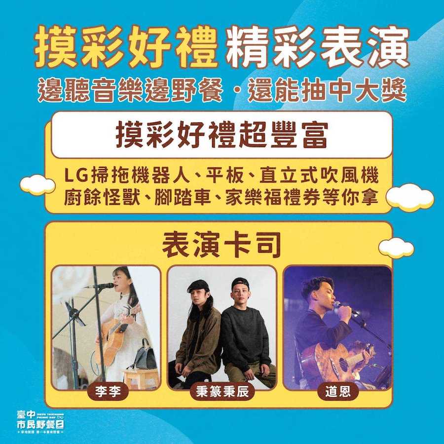 教育局長蔣偉民表示,台中市民野餐日活動鼓勵市民走出戶外,感受在草地野餐的休閒時光,同時親近公園綠地、促進人與人之間的情感交流。今年活動主軸結合閱讀推廣與家庭情感經營,將現場規劃為舞台區、野餐區、舒活市集區、閱讀主題區與特色打卡亮點等空間,營造一場如同翻開「生活的書」般的沉浸式幸福體驗,鼓勵夫妻、伴侶、家庭成員放慢步調,感受生活的溫度與美好。