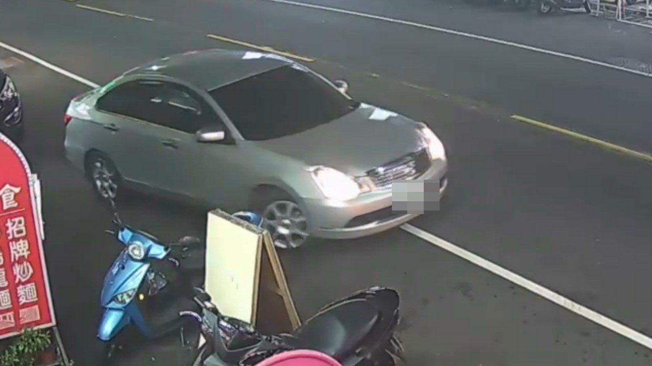 警員劉冠廷到場後檢視附近商家監視器發現,114年10月11日18時8分許,1部原本停放在林女機車旁的自小客車在起步時,自小客車的右前方不慎撞到林女的機車,造成機車及招牌架倒地,雖然駕駛劉女(48年次)有下車將機車及招牌架扶起,但是卻沒有報警處理,隨即開車離去。
