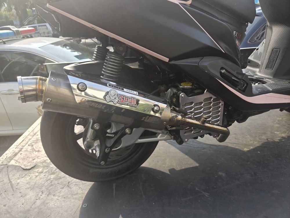 該部機車是這名20歲的柯姓女子所有,機車除了疑似改裝排氣管外,還涉及包括車牌上翹、改裝車燈及後照鏡太小等違規;員警當場告知相關法規及舉發標準後予以舉發、移置保管及扣繳牌照;在檢視機車車身狀況時,員警除了發現機車車身貼著「那又怎樣 撞柱當隊長」貼紙外,座墊下的置物箱內還有1塊以黑色皮革製成,印著「反正你們也抓不到我 FXXK OFF POPO!!」囂張字眼的車牌套,柯女無視交通法規的行為,員警見聞後直搖頭。