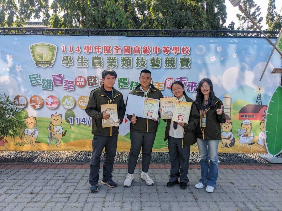 【記者劉幫寧/台中報導】教育部主辦「114學年度全國高級中等學校學生技藝競賽」農業類競賽,11月18日至20日在嘉義民雄農工舉行,全國計31校、250位學生同場較勁,台中市2所學校、10名學生參賽,最終由新社高中獲得3優勝的佳績。