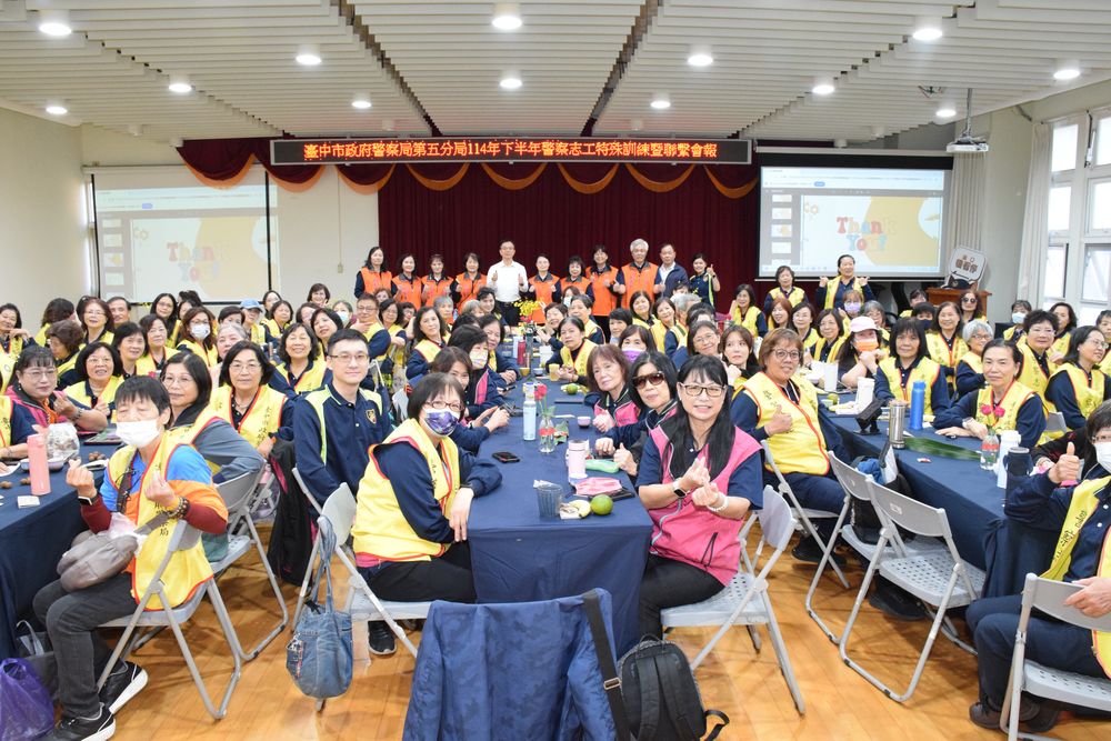 【記者詹姆士熊/台中報導】臺中市政府警察局第五分局於114年11月25日下午,舉辦「114年下半年警察志工特殊訓練暨聯繫會報」,集所屬各分隊志工約130餘人齊聚一堂,活動不僅是專業知能的提升,更是一場充滿感謝與向心力的警民盛會。