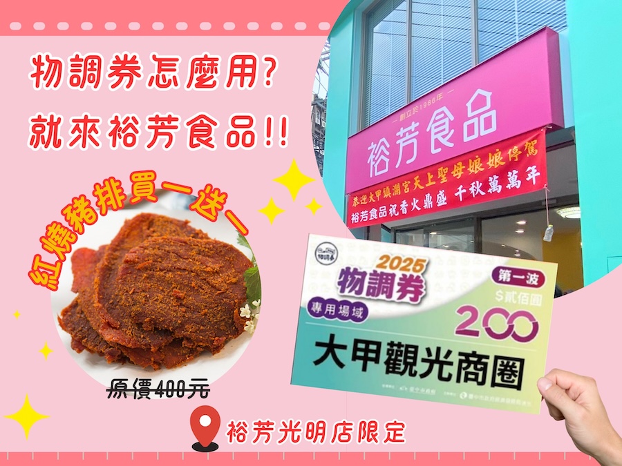 【記者吳靜/台中報導】想當VIP,這週來台中,荷包變2倍、商品也加倍!台中23大商圈明(28)日至30日共3天、23家產業故事館29日將「開發」今年第二波物調券,100換200荷包省一半,想要更好康,不要錯過物調券專屬優惠。此次分布山海屯城19處商圈、8家產業故事館共推出252項,其中包含紅燒豬排買一送一、紅茶及烏龍茶也有買一送一,還有更多限定商品5折起、滿額送好禮,這週最佳旅遊目的地就是台中!