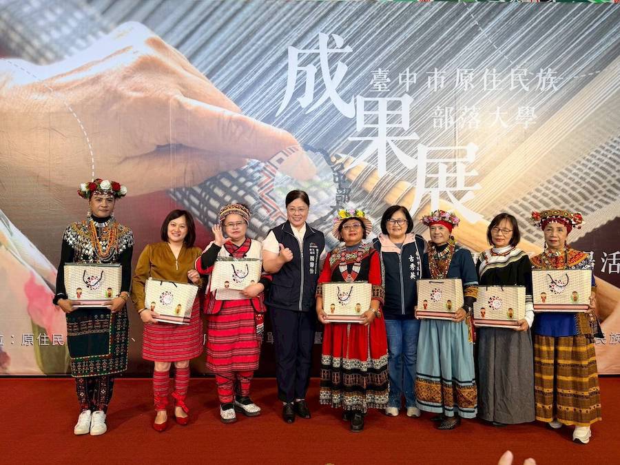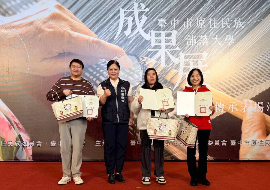 【記者李瑞華/台中報導】台中市政府原住民族事務委員會今(29)日在原民會一樓大廳舉辦「台中市原住民族部落大學成果展暨原住民族語傳承表揚活動」,由原民會主任委員楊馨怡代表市長盧秀燕出席,與近 200 位講師、學員、族語保母與志工齊聚,共同見證一年來在文化教育與語言復振上的豐碩成果。部落大學自 100 年成立以來,已成為台中推動原住民族文化教育的重要基地,課程累積逾一萬人次參與,並培育超過 250 位講師,是本市多元文化扎根最重要的力量之一。