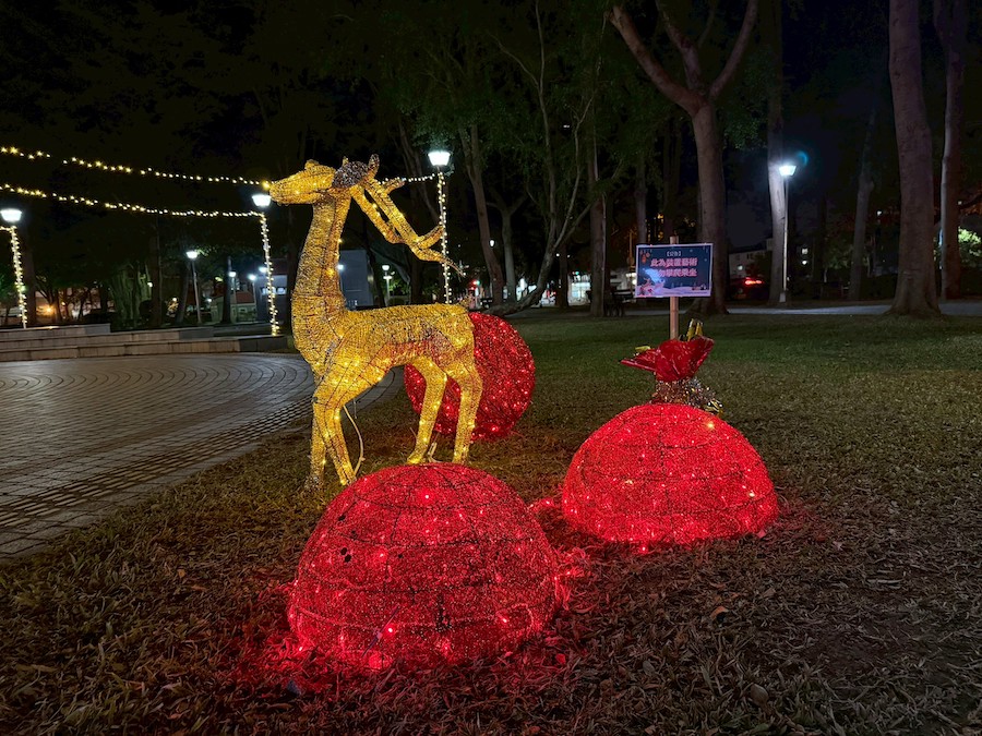 建設局長陳大田表示,為歡慶聖誕節及歲末迎新,特別規劃於市區公園設置節慶燈景,其中豐富公園於入口廣場打造可愛亮眼的聖誕樹造景,聖誕老人與馴鹿環繞其間,帶來滿滿祝福;湧泉公園則於滿月指環觀景步道周邊規劃「光之迴廊」,結合可愛小動物燈飾及手捧糖果的聖誕老人,增添活潑趣味,歡迎民眾前來打卡拍照,感受濃濃節慶氣息。