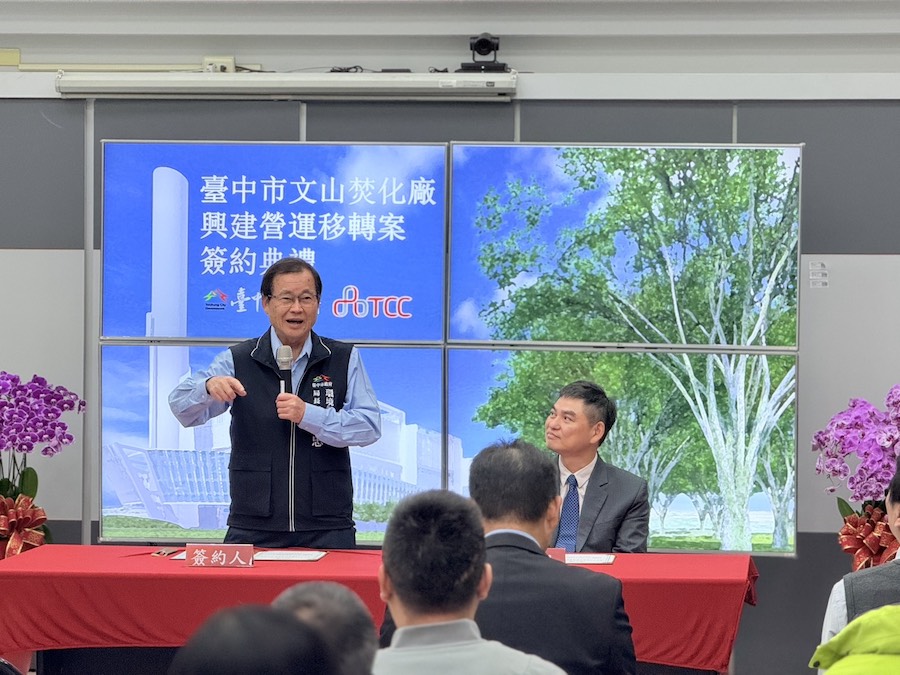 【記者盧世光/台中報導】台中市政府推動的「文山焚化廠興建營運移轉(BOT)案」成功招商,今(11)日下午正式完成簽約儀式,由環保局長吳盛忠與台泥文山環保科技股份有限公司董事長蔡立文代表雙方簽署。環保局表示,依計畫進度,新廠預計於115年動工、118年底完工,並在119年正式投入營運。