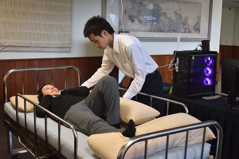 長期臥床病患容易導致壓瘡等併發症,需靠護理師不時確認,在人力吃緊的前提下,既耗時又可能誤判。在王峻國老師指導下,醫學資訊學系四年級學生黃意媜、Felicia Lee、楊竣淞與花蓮慈院護理部,合作開發「3D影像壓瘡擺位辨識系統」。以預防勝於治療為理念,導入深度影像感測裝置與AI影像辨識技術,自動偵測翻身擺位姿勢是否正確。當有異常發生時,發送訊息預警告知,協助護理人員及早介入、降低風險。