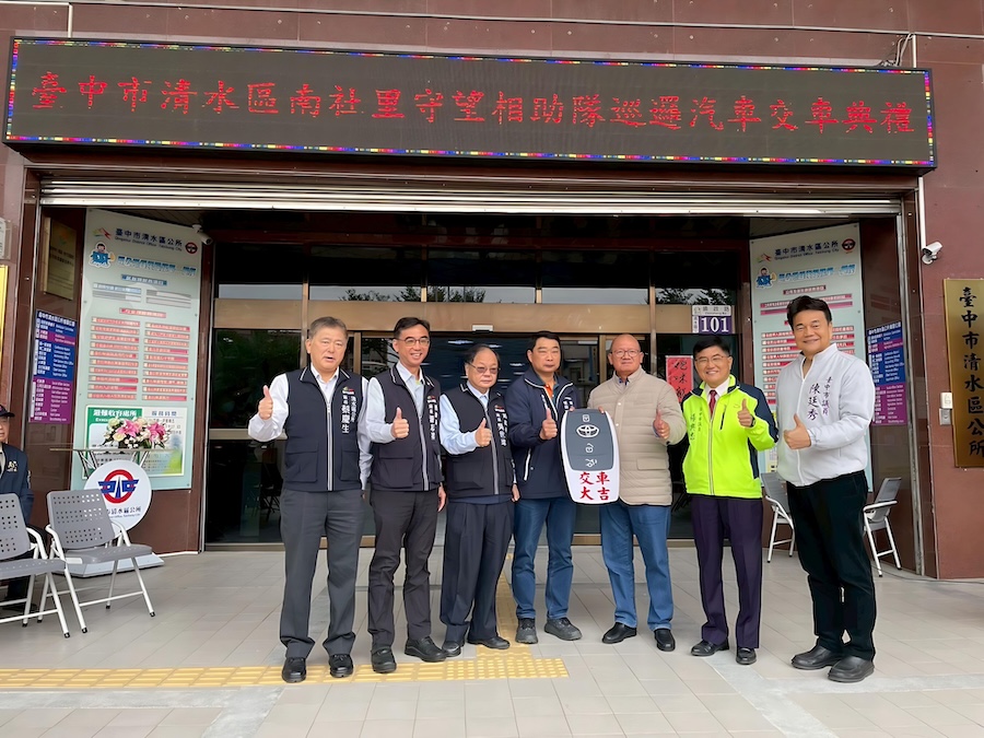 清水區公所說明,南社里人口近1萬3,500人,是清水區第一大里,清水區南社里守望相關隊共有54名隊員,里內並設有32個巡邏點,每位守望隊員都是維持社區治安不可或缺的力量,也是民力與警力合作的典範,感謝市府及各界人士體恤基層服務需求,協助南社里守望相助隊汰換巡邏車,讓隊員巡守不怕風吹日曬雨淋,提振隊員巡守士氣。