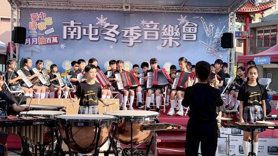 經發局說明,今日南屯冬季音樂會現場熱鬧非凡,5組表演團隊輪番演出,包括「閃亮台中樂團」、「台中逗樂愛樂團」、「大墩國小節奏樂團」、「惠文高中國樂團」及在地團隊「老闆樂團」,曲風多元、節目精彩,吸引大量民眾隨音樂擺動,共享百萬大獎揭曉的歡樂時刻,展現台中冬季藝文活動的魅力。