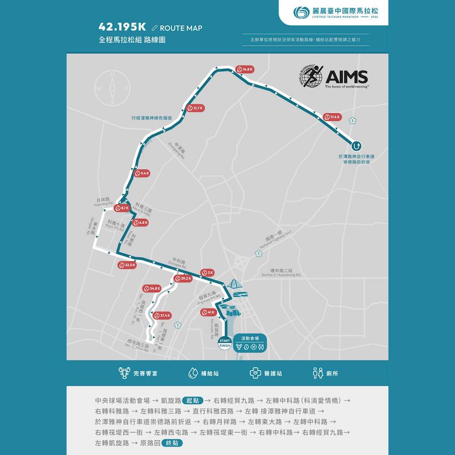 賽事自中央公園起跑,沿途串聯多處普立茲克建築獎得主作品,跨越科湳愛琴橋、行經潭雅神綠廊,讓跑者在奔馳之際,同時體驗建築美學與自然景觀交織的城市風貌。本賽事具備高額獎金、豪華在地美食補給、超值參賽禮、城市經典賽道,以及設置樂齡組推廣全齡共跑等五大亮點,跑者不僅能在舒適賽道上盡情揮灑汗水,沿途還能品嚐台中特色補給、欣賞都會景觀,賽後更提供專業防護與按摩服務,讓馬拉松不僅是一場比賽,更是一趟愉悅、舒適的城市旅程。