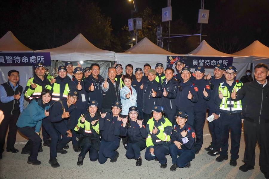 警察局表示,為確保昨晚跨年活動順利進行、保障民眾人身安全,該局嚴密規劃勤務,自昨日上午8時起分三階段派遣警力進駐活動會場及周邊重點路段,執行交通疏導與會場安全維護等任務,勤務持續至翌日凌晨陸續收勤。執勤期間適逢氣溫驟降,警察同仁長時間服勤,堅守崗位、全力投入,確保跨年活動圓滿完成。跨年倒數結束後,盧市長特別前往活動安全維護警察指揮所慰勤,親自向第一線執勤同仁表達感謝與肯定,並關心同仁執勤狀況與辛勞付出,感謝警察同仁不畏辛勞、守護市民安全。警察局也未來將持續精進勤務規劃與警力部署,全力維護各項大型活動秩序與市民生命財產安全。