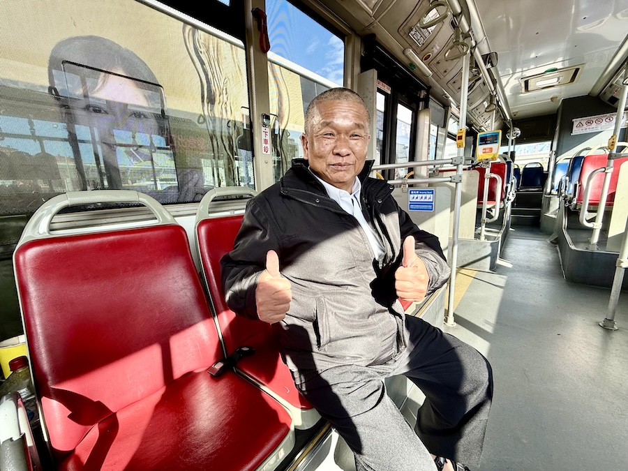 謝竣吉說,他原本開貨車,因載貨量減少結束生意,轉換跑道當公車駕駛,為熟悉路況和停靠站點,剛開始跟著資深駕駛認路,隨車學習從3天延長到10天,下班後還騎機車確認公車路線,學得慢但記得住最重要,目前服務時間為下午班,為保持工作精神,嚴格要求規律作息養足體力,珍惜為乘客服務的機會。