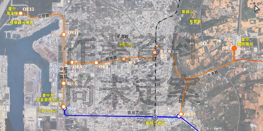 捷工局說明,橘線延伸線初步將路線劃分為主線段、三民路支線段及梧棲漁港支線段。橘線全長約16.50公里,設置10座車站及1座五級機廠,自台中國際機場起,經由中航路、中清路、三民路、中正街、民族路、臨港路等主要幹道往清水、沙鹿及梧棲地區方向延伸,串聯捷運藍線、台鐵清水車站等重要交通樞紐,並銜接如港區藝術中心、梧棲漁港及台中海洋館等知名景點。透過軌道運具的連結,建構海線地區的交通動脈,活絡地方觀光發展。