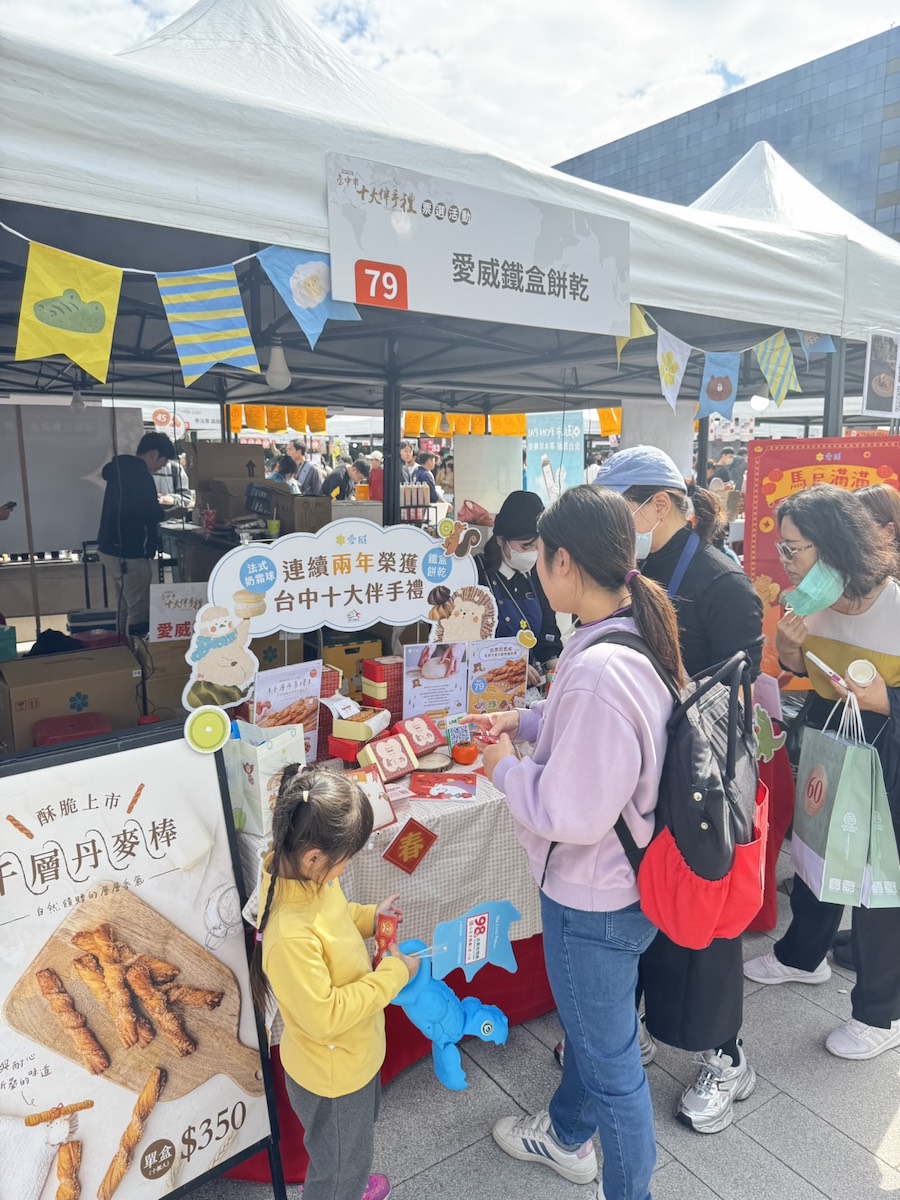 工策會副總幹事林家興表示,十大伴手禮由工策會辦理迄今已邁入第17屆,累積吸引數千家業者參與,選拔出上百家得獎品牌,是全台伴手禮產業最具指標的官方選拔活動。得獎廠商不僅獲得市府認證,更能大幅提升品牌能見度與市場競爭力。今年票選活動首度移師中市政府廣場舉辦,一早即湧入大量人潮,現場氣氛熱烈,業者皆卯足全力催票,不僅祭出超值優惠,更準備上百份、上千份好康贈品回饋支持的消費者,邀請民眾前來投票、逛市集、撿優惠,感受台中伴手禮的豐富魅力。