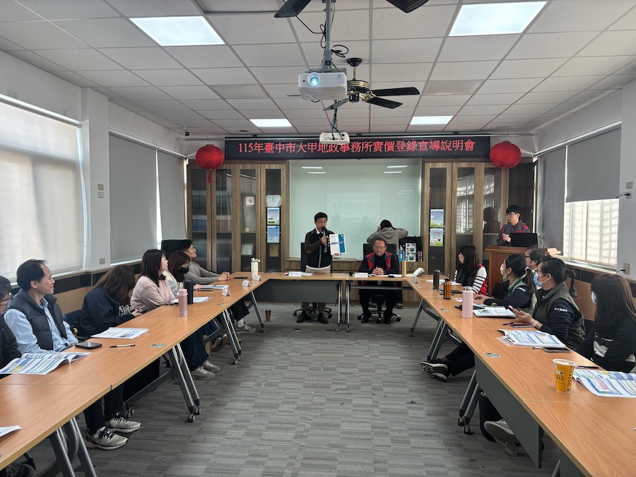 大甲地政事務所許世強主任強調,大甲所配合地政局已於1月20日舉辦實價登錄「宣導說明會」,現場有許多業者踴躍參加,有效協助釐清實價登錄疑義,後續本市各地所也將陸續舉辦,歡迎業者朋友洽各本市各地所詢問舉辦場次,共同為打造透明、健全的不動產交易環境努力。