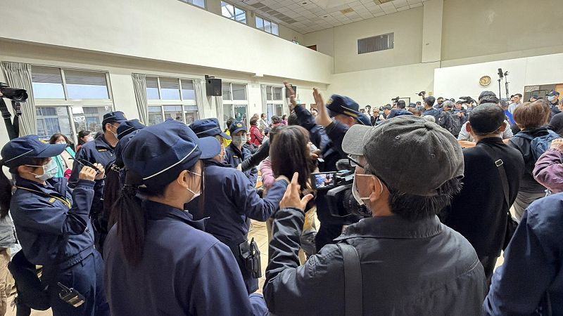但陳情民眾不滿程序不公,不僅高呼流會、會議無效,還激動下跪要求會議停止,最後抗議無果,與現場警方數度爆發激烈推擠與肢體衝突,現場還有會議桌被掀翻,也有情緒激動的民眾被警方壓制,以致會議癱瘓一整個上午。
