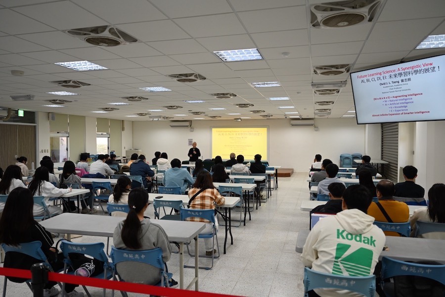 【記者吳靜/台中報導】為培養學子面對未來科技浪潮的跨域整合能力,台中市政府教育局今(7)日於市立西苑高中舉辦第5場「傑出科普講座」,特別邀請中央研究院院士曾志朗親臨開講,以「AI, BI, CI, DI, AND EI: Prepare for Future Learning Sciences」為題,帶領現場師生深入探討人工智慧、生命科學與人文素養交織而成的未來學習樣貌,為學子開啟一場兼具高度與深度的知識饗宴。