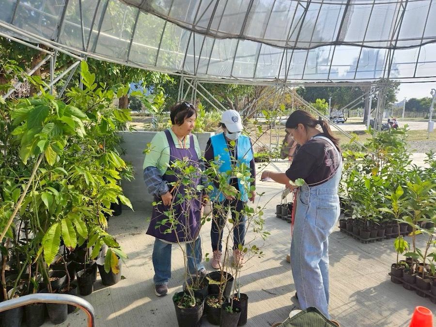 陳局長進一步指出,中央公園近年持續推動原生植物自主採種與育苗工作,目前已培育近百盆毛柿,並完成青剛櫟採種,現正進行育苗發根作業,另也培育蘭嶼海桐穴盤苗,逐步累積在地原生植物繁殖與栽培經驗,為未來建立公園原生種苗庫奠定重要基礎。