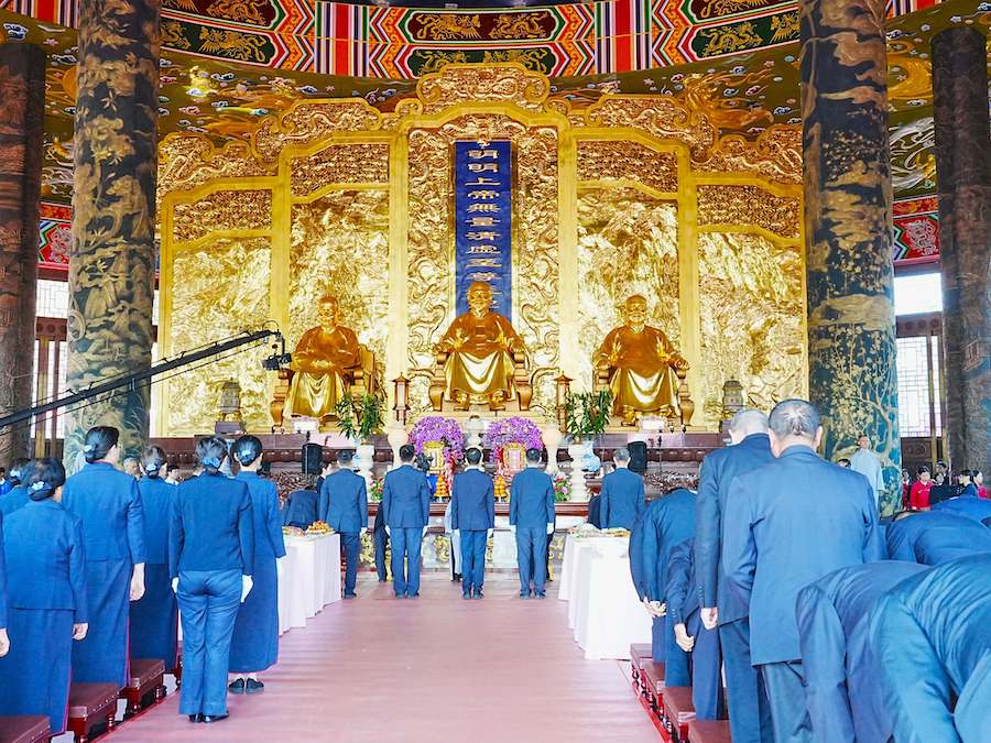 【記者詹姆士熊/台中報導】財團法人一貫道崇正基金會今(21)日於台中市霧峰區一貫道祖師紀念館-白陽聖廟天壇舉行「2026全球華人暨寶光崇正祭祖盛典」,依循古禮科儀緬懷祖師、師尊、師母及各組線先賢早年奉獻,彰顯慎終追遠與世代傳承的精神。台中市政府民政局長吳世瑋代表市長盧秀燕出席活動表示,寶光崇正祭祖盛典已邁入第29年,每年吸引上千名道親參與,不僅展現深厚文化底蘊與儀典之美,更讓祭祖文化在當代社會中持續發光,已成為台中最具代表性的宗教盛典。