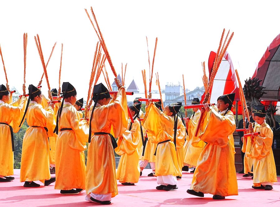 今日祭典中,由吳局長擔任初獻正獻官,亞獻正獻官由金陵山宗教園區總裁湯文萬擔任,終獻正獻官則由寶光崇正道場樞紐翁嵩慶擔任。典禮循古制展開,從「鼓三嚴」肅靜開場,象徵敬祖之心凝聚,隨後依序進行迎神、獻供、祭拜明明上帝與白陽三聖,以及最具核心意義的三獻禮,完整呈現祭祖儀程的層次與精神,典禮更邀集寶光崇正道場青年學子演出六佾舞,步伐整齊、樂聲悠揚,傳遞對祖師的崇敬之情,也象徵祭祖文化在世代間延續流傳。