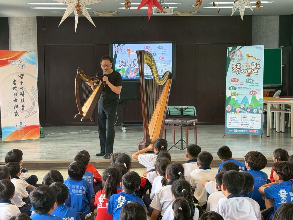 【記者詹姆士熊/台中報導】正聲廣播公司台中台今年上半年舉辦的「聲動傳愛~琴人抱豎」公益之旅彰化場,3月24日邀請豎琴獵人李哲音老師前往彰化縣埤頭鄉豐崙國小與埔鹽鄉新水國小,透過豎琴帶領小朋友們展開歡樂的音樂旅程。