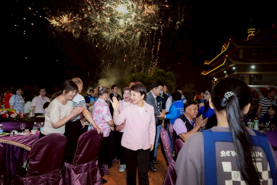 【記者盧世光/台中報導】台中市外埔區台灣道教總廟無極三清總道院,為恭祝三清道祖與觀音大士聖誕,自3月29日起連續5天舉辦「祈安禮斗植福息災拔度法會」,並於今(2)日晚間舉行平安福宴,邀集各友宮代表、道長及信眾共襄盛舉,席開150桌,場面熱鬧。台中市長盧秀燕親自到場致意,代表市府致贈「神風朗耀」匾額,肯定其長年弘道濟世、造福地方。