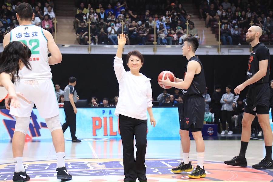 【記者盧世光/台中報導】職籃聯盟「P. LEAGUE+」賽事熱烈進行中,因應桃園巨蛋整修,桃園璞園領航猿主場週賽事今(4)明兩日於台中洲際迷你蛋盛大開打。市長盧秀燕今日親自開球,號召滿場觀眾將掌聲留給球員,展現台中人的熱情。