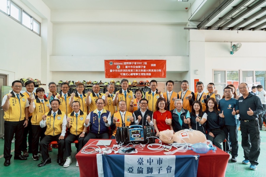 【記者李瑞華/台中報導】國際獅子會300C2區台中市亞倫獅子會,在會長陳裕承的熱心號召下,偕同28位企業家與地方善心人士,共同捐贈一台高階「可攜式心臟電擊生理監視器」予消防局溪湳分隊。這次捐贈不僅大幅提升第一線的救護效能,更為市民的生命安全增添了一道堅實的保障。