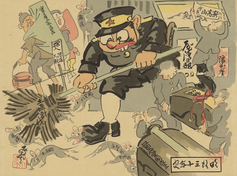 國島水馬-漫畫臺灣年史-1931-膠彩絹本-上冊-26-35-公分-共24頁-下冊-26-35