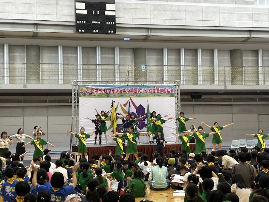 【記者劉幫寧/台中報導】台中市114學年度第2學期幼童軍聯團活動今(29)日上午於逢甲大學體育館熱鬧登場,由梧棲區梧棲國小承辦、台中市童軍會協辦,集結42校、約748名幼童軍及服務員參與,小狼與小蛙齊聚一堂,現場氣氛活潑熱絡,展現童軍教育的蓬勃活力。